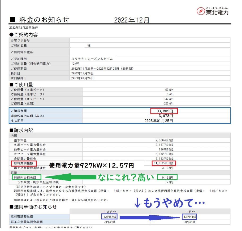 【電気代33,809円】-【太陽光で稼いだ3,848円】