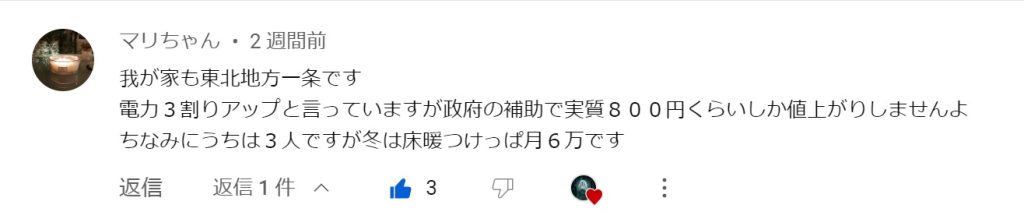 ・東北地方で建てた一条工務店の家庭(オール電化・床暖フル稼働を含む)の電気代